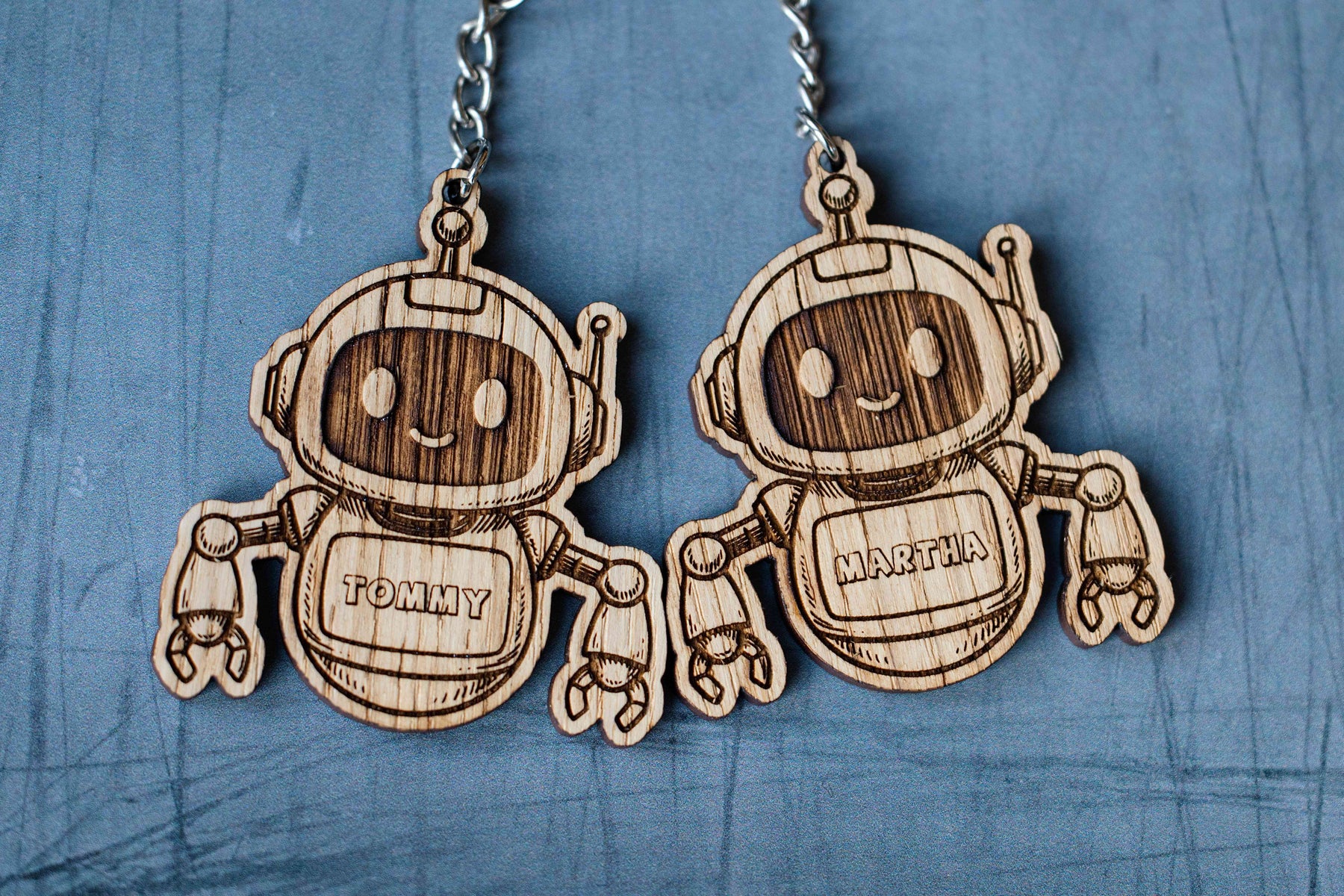 These personalised wooden robot keyrings are engraved with each child’s name or a short message, making them a fun keepsake rather than a throwaway toy. With detailed laser engraving and a strong 1.2mm metal keychain, they’re designed to handle everyday adventures on school bags, book bags and pencil cases.
