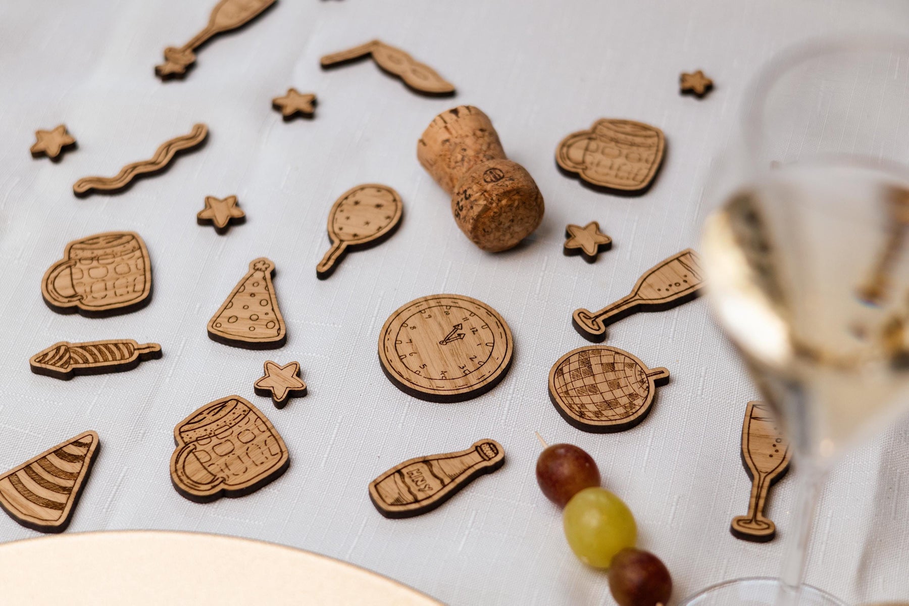 Whether you’re hosting a cosy winter dinner, a festive New Year’s Eve gathering, or a holiday brunch with friends, this wooden confetti adds a unique, handmade charm that paper confetti can’t match. It’s an eco-friendly, reusable alternative to disposable confetti — ideal for conscious buyers and anyone who loves sustainable, handcrafted décor.